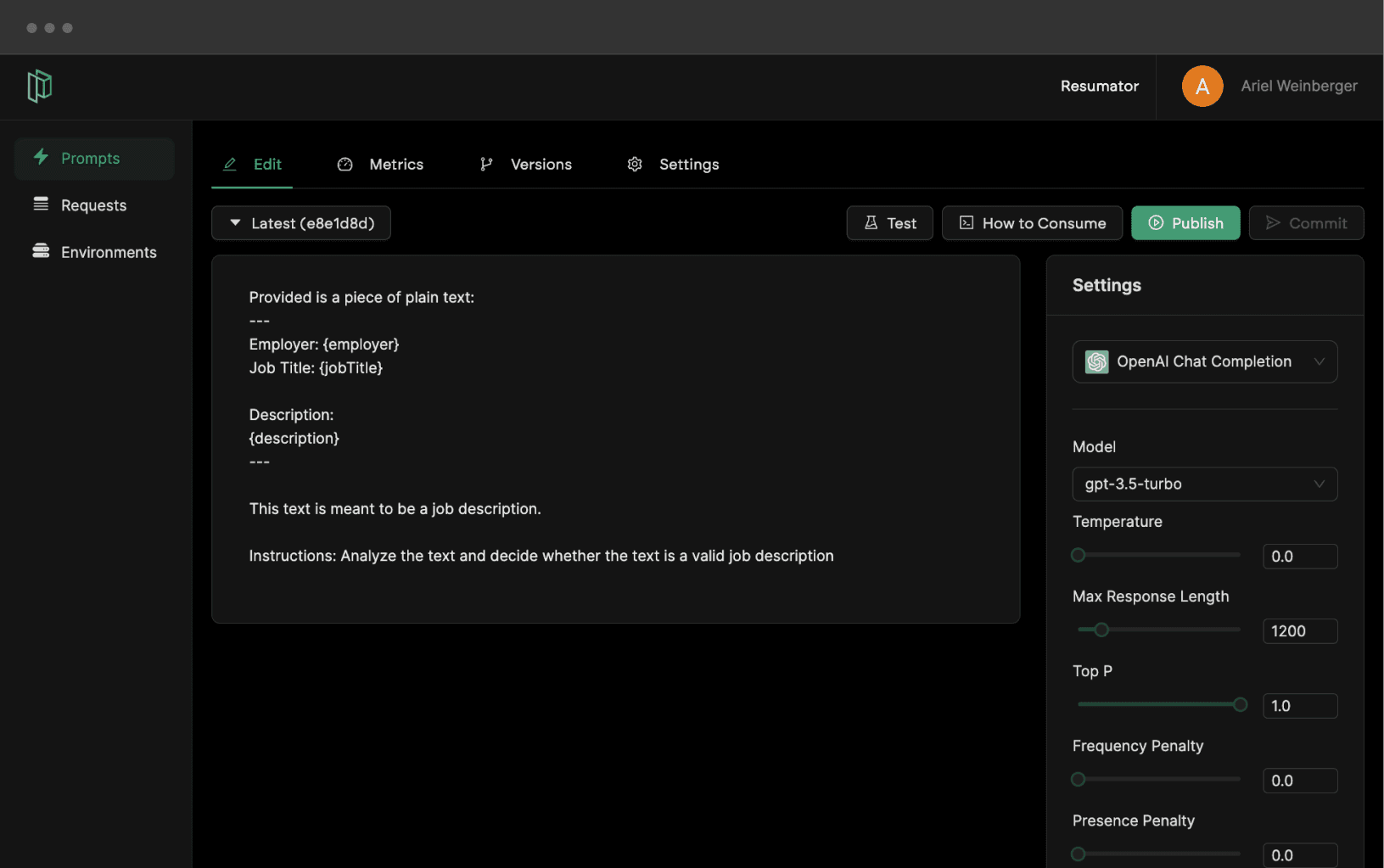 Manage your prompts in one place, utilize version control, and deploy to production instantly.